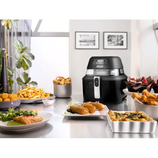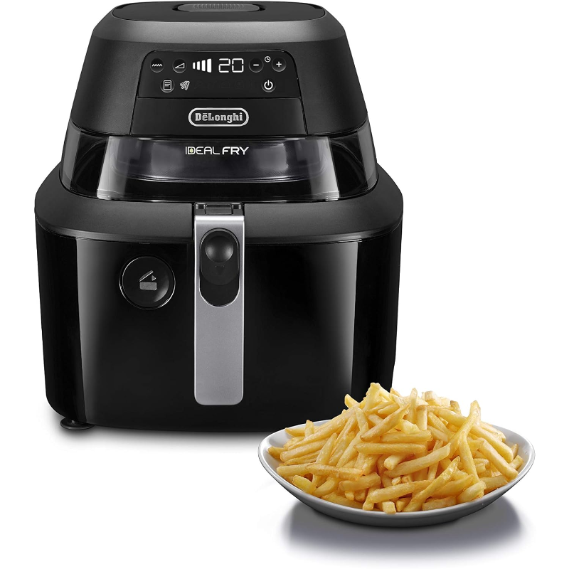 La freidora eléctrica Delonghi F38436 cuenta con una capacidad de2.5 litros y un sistema de fritura con aire caliente. Su