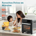La freidora de aire Cosori cuenta con una capacidad de 12 litros, diseñada para la cocción de alimentos mediante circulación de aire caliente. Está equipada con un panel de control digital que permite ajustar tiempos y temperaturas de cocción. Incluye 11 funciones preestablecidas que facilitan la preparación de diferentes tipos de comidas, desde frituras hasta asados. La temperatura de funcionamiento oscila entre 75 y 205 grados Celsius, con un temporizador de hasta 60 minutos. Su cesta de cocción es desmontable y apta para lavavajillas, facilitando la limpieza posterior al uso. Entre sus componentes se encuentran elementos calefactores y un ventilador que garantizan la distribución uniforme del calor. Este modelo cuenta con un modo de precalentamiento, que permite alcanzar la temperatura deseada antes de iniciar la cocción. La freidora también tiene una función de mantenimiento del calor, que permite mantener la temperatura de los alimentos una vez cocinados. Su diseño incorpora varios accesorios que permiten ampliar la versatilidad en la preparación de diferentes recetas. La Cosori Freidora de Aire 12 L es compatible con recetas de cocina varía, permitiendo experimentar con diferentes tipos de alimentos y métodos de cocción.