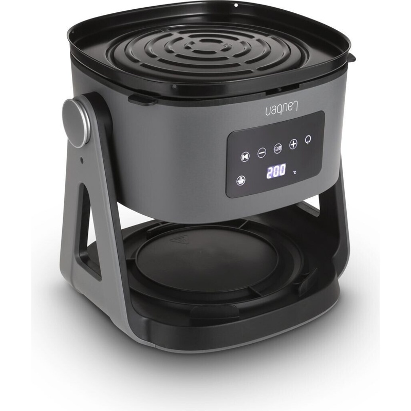 Freidora de Aire Caliente Lauben 3 en 1 Vidrio Parrilla Sartén 5500BG con capacidad de 5,5 litros. Este aparato combina tres funciones: freír, asar y hornear, utilizando aire caliente para cocinar los alimentos. Está diseñado con una estructura de vidrio que permite visualizar el proceso de cocción. La freidora cuenta con un panel de control digital que permite ajustar la temperatura y el tiempo de cocción de manera precisa. Su potencia máxima es de 1.500 vatios, lo que proporciona un calentamiento eficiente. Incluye un cestillo extraíble que facilita la limpieza. La cesta tiene una capacidad adecuada para preparar diversas porciones de alimentos. La freidora es compatible con una amplia gama de ingredientes, incluyendo carne, pescado y verduras. Además, dispone de un sistema de circulación de aire que asegura una distribución uniforme del calor. Este equipo está indicado para preparar comidas sin la necesidad de utilizar grandes cantidades de aceite, lo que mantiene las características nutricionales de los alimentos. La Lauben 5500BG también cuenta con múltiples ajustes de temperatura, que van desde 80 °C hasta 200 °C, permitiendo un amplio rango de aplicaciones culinarias. La base del aparato está diseñada para garantizar estabilidad durante su uso. El manual de instrucciones incluye recomendaciones para el cuidado y mantenimiento del producto, así como indicaciones para la correcta utilización de cada una de sus funciones.