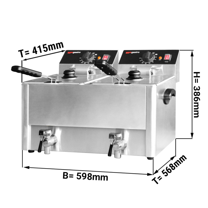 Freidora Doble 8+8L Inoxidable Profesional 6,5 kW GGM Gastro Acero