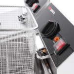 Freidora Doble 8+8L Inoxidable Profesional 6,5 kW GGM Gastro Acero está diseñada para la fritura de alimentos en grandes cantidades. Su capacidad total es de 16 litros, distribuidos en dos compartimentos de 8 litros cada uno. La estructura está fabricada en acero inoxidable que facilita la limpieza y resiste la corrosión. Este equipo cuenta con una potencia de 6,5 kW, lo que permite un calentamiento rápido y eficiente del aceite. Su funcionamiento se basa en un sistema de termostato que regula la temperatura de manera precisa, con un rango que puede ajustarse según las necesidades de cocción. Dispone de un sistema de filtrado que ayuda a mantener la calidad del aceite durante el uso prolongado. La instalación de la freidora es sencilla, adaptándose a distintas configuraciones de cocina. Los elementos de calefacción están diseñados para una distribución uniforme del calor, contribuyendo a una cocción efectiva. La freidora incluye una tapa para cada compartimento, lo que ayuda a minimizar la evaporación del aceite. Es compatible con diferentes tipos de grasas y aceites para la fritura. La seguridad del usuario es parte de su diseño, ya que se implementan características para evitar sobrecalentamientos y garantizar un desempeño constante. Este producto está destinado al uso en entornos donde se requiere cocinar grandes cantidades de alimentos fritos de manera regular.