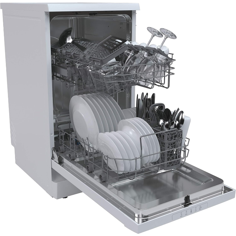 El lavavajillas Candy CDPH 2L1049W tiene una capacidad nominal de 10 servicios. El aparato integra una puerta frontal con panel de mandos, cuba de lavado y espacio interior distribuido en cestas para la colocación de platos, vasos, tazas y cubiertos. Incorpora sistema de aspersión de agua, filtro de lavado y dispensador para detergente en la puerta. Su funcionamiento requiere conexión a la red eléctrica, toma de agua y salida de desagüe. Está destinado a ejecutar ciclos automáticos de lavado y aclarado de vajilla marcada como apta para lavavajillas. La referencia CDPH 2L1049W corresponde al modelo de Candy identificado con esta capacidad de carga. El uso del equipo se realiza con detergente específico para lavavajillas y con conexión permanente a las instalaciones de agua y desagüe durante el ciclo.